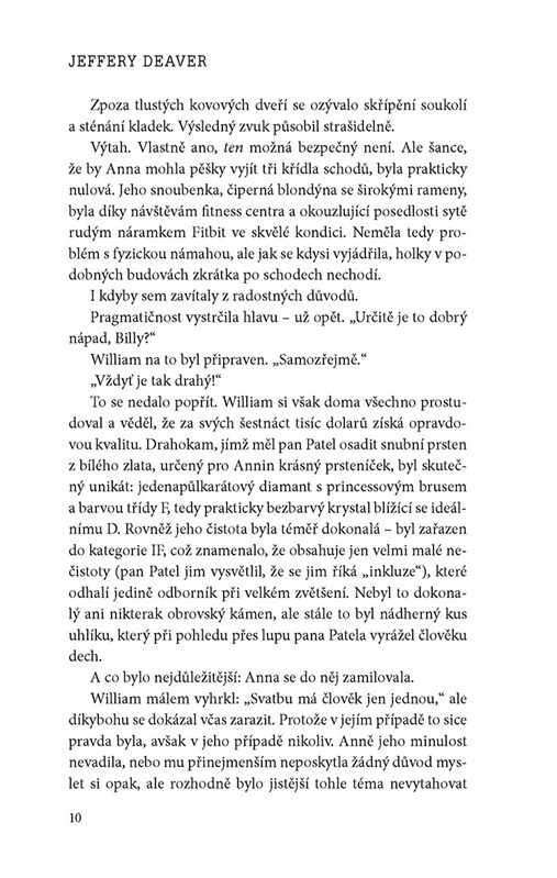 Pokaždé, když se Rhymovi se Sachsovou podaří odkrýt nějakou stopu, jako by se pachatel na oplátku přiblížil k nim. A pak upoutá jeho pozornost prsten, který dal Lincoln Amélii. Na tom šperku je cosi obzvlášť přitažlivého… Mohl by dvojici legendárních vyšetřovatelů stát symbol jejich společné budoucnosti život?