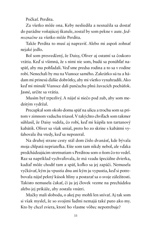 Cesta za pohodlím, jedlom a škrabkaním vedie cez mnohé nástrahy – mačacie dvere, okolo úhlavnej nepriateľky, popri dobrom poštárovi, namosúrenej susede i mladej žene, ktorá ešte neprestala snívať. Čakajú nakoniec na neho i všetkých obyvateľov Hugovej ulice krásne Vianoce?