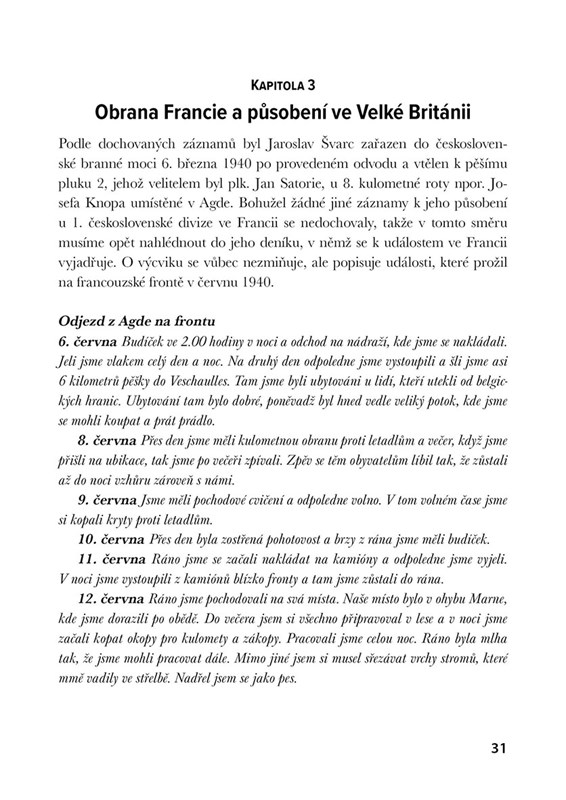 Příběh Jaroslava Švarce, jednoho ze sedmi statečných parašutistů, který padl 18. června 1942 v kryptě chrámu sv. Cyrila a Metoděje v Resslově ulici v Praze. Publikace prochází celý jeho život od působení u hraničářského pluku 4 Hlučín přes odchod za hranice v roce 1940, boje ve Francii, život a výcvik ve Velké Británii před nasazením v paravýsadku TIN až po jeho statečný boj proti nacistickým okupantům. Kniha zároveň sleduje osudy jeho přátel a rodiny a připomíná snahy o uctění památky Jaroslava Švarce po skončení války. Autor vycházel z jeho osobních deníků, které doplnil informacemi z vojenských archivů a dalších zdrojů. Kniha je aktualizovanou a rozšířenou reedicí původní publikace, která vyšla v roce 2014 při příležitosti 100 let od narození podplukovníka in memoriam Jaroslava Švarce.
