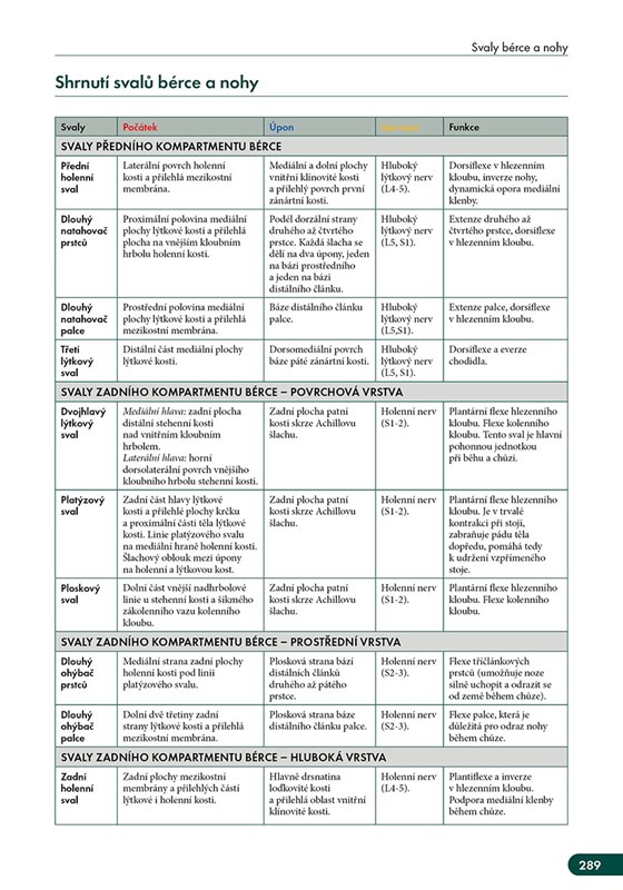 V každé kapitole je přehled základní anatomie příslušné oblasti těla, jsou vyobrazeny důležité kostní struktury, pomocí nichž se lze v dané oblasti orientovat, příčné řezy svalovými skupinami, místa svalových úponů a přehled nejpodstatnějších nervových drah.