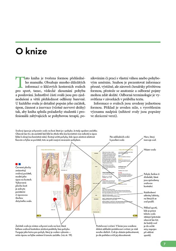 Tato komplexně pojatá kniha nabízí více než 500 detailních, avšak srozumitelných, obrázků a stručné, výstižné texty, díky kterým kompletně uvidíte a pochopíte každý sval. Tyto informace jsou navíc doplněny základními cviky, kterými můžete daný sval posílit či protáhnout.