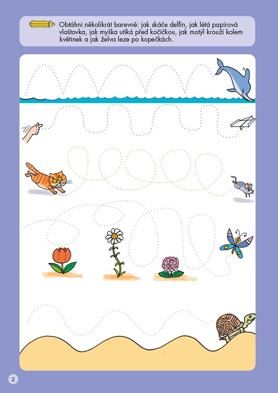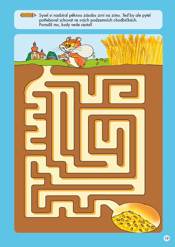 Pomůžeš syslovi doplnit zásoby na zimu a nakreslíš včelkám cestu do úlu? Vybarvíš motýlkům křídla? Zkusíš obtáhnout, jak skáče žabka a jak letí bumerang?