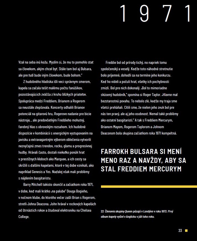 Autor totiž odviedol skvelú prácu v tom, aké informácie vybral ako kľúčové a ako ich zapracoval do textu. Dozviete sa toho o Freddieho živote a kariére dosť, no zároveň to nie je len taký suchý prierez jeho kariérou. Pri jednotlivých dôležitých miľníkoch skupiny Queen uvádza množstvo detailov z dobovej hudobnej scény, porovnáva úspech Queen s kariérami iných veľkých rockových kapiel a interpretov, čitateľom približuje prečo boli niektoré skladby škandalózne alebo prelomové… pomôže vám pochopiť reálie v ktorých členovia skupiny Queen žili a tvorili a prečo boli v čase ich najväčšej slávy takí zbožňovaní fanúšikmi a, naopak, často zatracovaní kritikmi.