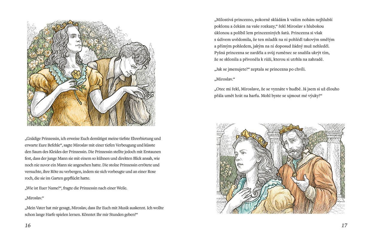 Klasické české pohádky v dvojjazyčné úpravě, příběhy, které se po generace předávají dalším pokolením k vám nyní přicházejí v bohatě ilustrované knize, aby potěšily děti i dospělé. Najdeme zde pohádky na motivy Boženy Němcové, Karla Jaromíra Erbena a Václava Říhy. Nechybí zde Pyšná princezna, Šípková Růženka, Čertův švagr či například Rozum a Štěstí. Zrcadlově uspořádaný text umožňuje kontrolu porozumění.