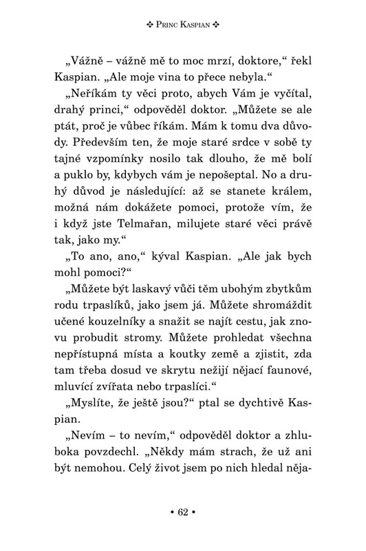 NARNIE… kde zvířata mluví… kde stromy chodí… kde právě začíná bitva. Princ Kaspian, oloupený o své právo na trůn, shromažďuje armádu, aby zbavil zemi falešného krále. Ale nakonec je to čestný souboj mezi dvěma muži, který má rozhodnout o osudu celé země.