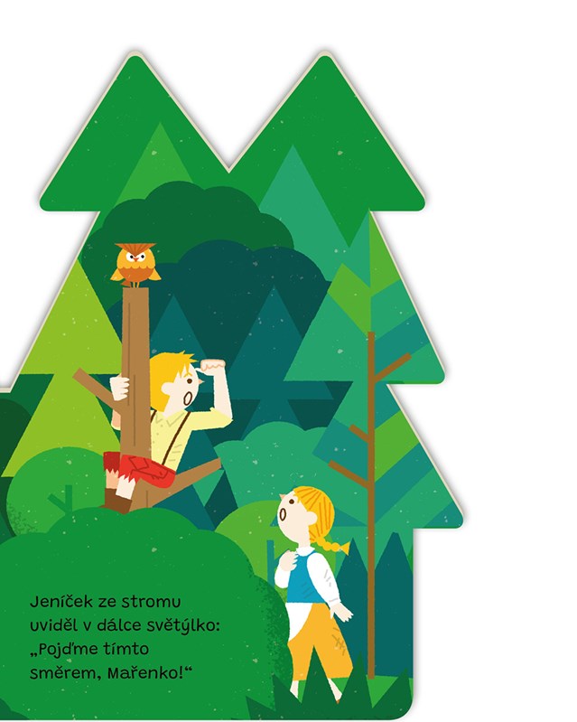 Když Jeníček a Mařenka v lese natrefí na chaloupku celou z perníku, ještě netuší, že je čeká napínavé dobrodružství… že už tu pohádku znáte? Určitě ale ne v tomto novém kabátku! Na první pohled knížka vypadá jako jednoduché kulisy známého příběhu, ale s každým otočením stránky je pohádka na dobrou noc zábavnější a zábavnější.