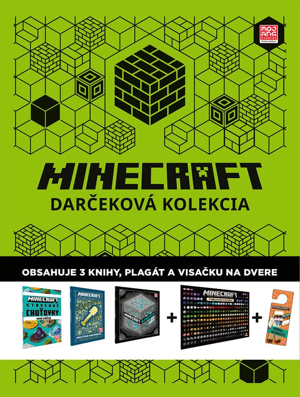 Vnútri nájdete Kreatívnu príručku, prehľadnú Blokopédiu a knihu s úžasnými Stavebnými chuťovkami pre všetkých náruživých staviteľov. Súčasťou kolekcie je aj plagát s tabuľkou kociek v Minecrafte a obojstranná visačka na dvere.