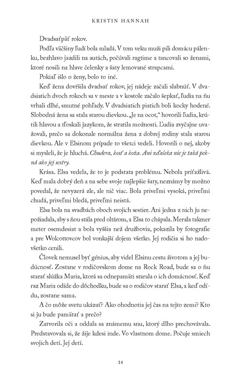 Od autorky bestsellerov Slávik a Veľká samota prichádza silný epický román o láske, hrdinstve a nádeji, zasadený do čias veľkej hospodárskej krízy, keď Amerika bojovala sama so sebou, milióny ľudí boli bez práce a aj pôda akoby sa obrátila proti nim.