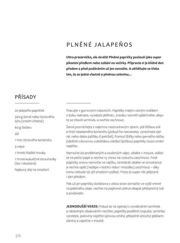 (pad thai, chili con carne nebo vindaloo) i české kuchyně (božský pivní guláš či pikantní utopenci), ale myslí se i na vegetariány (spousta receptů, ve kterých vám maso rozhodně chybět nebude), alkoholiky (kapitola plná drinků) a sladkomily (neuvěřitelné, sladce-pálivé dezerty). Prasárničky typu kuřecí popcorn, domácí jerky nebo slanináda budou už jen pomyslnou třešínkou na vašem pikantním dortu. Nicméně, pokud se chcete vyhnout vyděračskému slzení, kýchání a smrkání přecitlivělých spolustrávníků, drtivá většina receptů vám bude stejně dobře fungovat i bez chilli – byť tak přijdete o to nejzábavnější!
