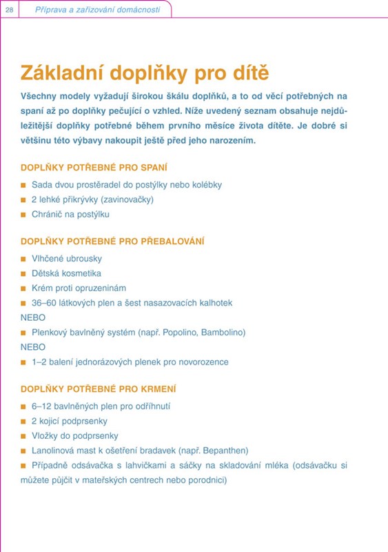 - Jak dítě přebalovat, ošetřovat, koupat a nosit a co k tomu potřebujete.