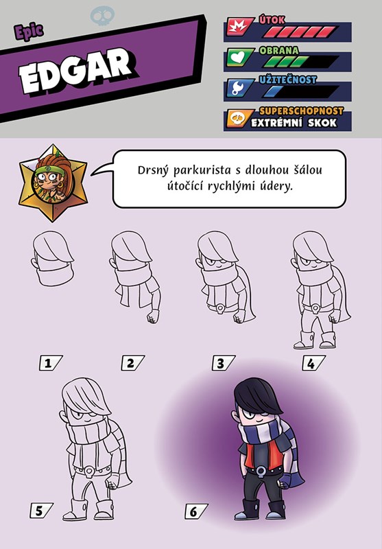 Tak hraní Brawl Stars na mobilu nebo tabletu by ti šlo, ale co si zkusit nejznámější brawlery třeba taky nakreslit? Neboj, není to žádná věda a díky téhle úžasné výtvarné knize se v 6 jednoduchých krocích naučíš tvořit fakt cool brawko obrázky! Navíc se o jednotlivých „postavách“ dozvíš také spoustu zajímavostí a užiješ si hodně legrace!