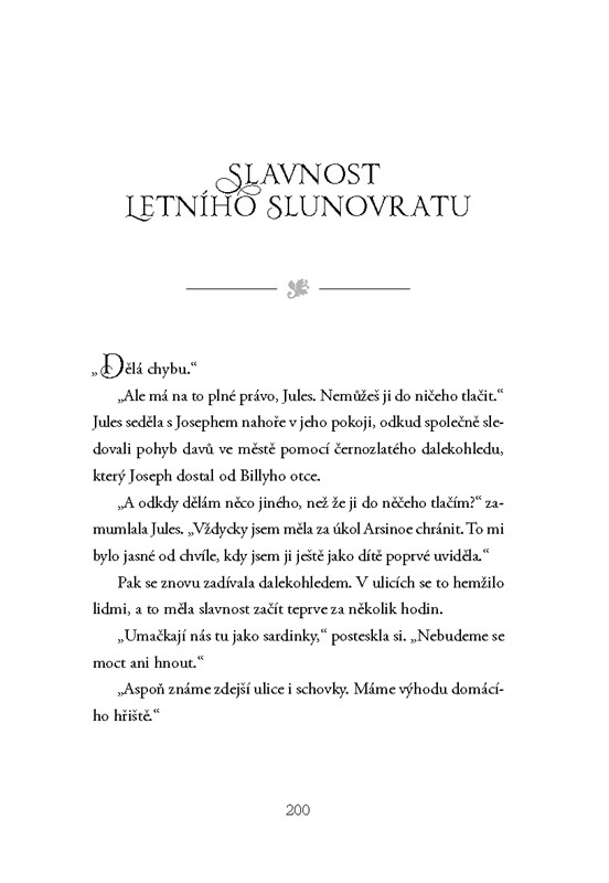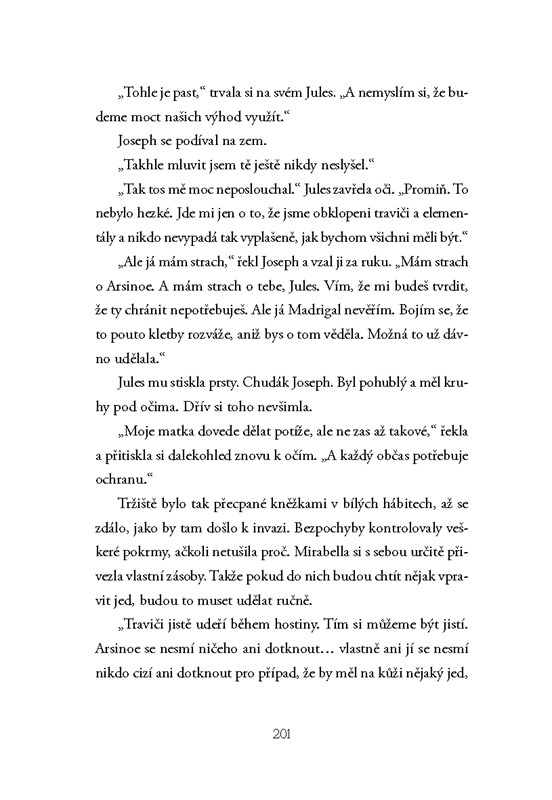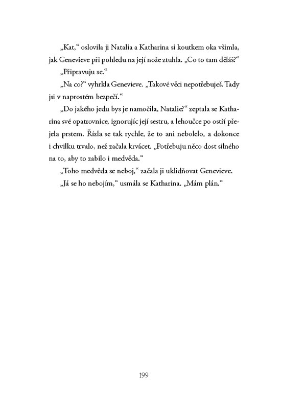 Kdysi nejslabší Katharina je teď silnější než kdy dřív. Arsinoe odhalila tajemství svého daru a získala tak velkou výhodu. Dokáže jej však použít tak, aby si toho nikdo nevšiml? Mirabella, všemi považovaná za jistou vítězku a budoucí královnu, musí čelit zákeřným útokům, které se neustále stupňují. Dokáže ubránit sebe a své nebližší?