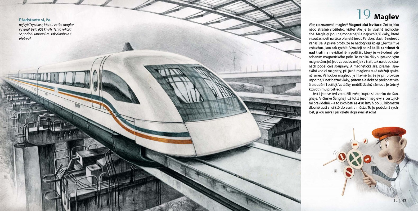 Kdysi dávno usedla na koleje první lokomotiva a svůj náklad do cíle odvezla podobnou rychlostí, jako když jdete na procházku. O dvě století později už se po celém světě běžně proháněly vlaky rychlostí mnoha stovek kilometrů v hodině. Jak k tomu došlo? To zjistíte v této velkolepě ilustrované publikaci. Najdete v ní ty nejzajímavější vlaky: obrovskou parní lokomotivu Big Boy, vznešený Orient Express, posunovací lokomotivu nebo třeba japonský Šinkansen. Tak honem nasedat, tohle si nemůžete nechat ujet!