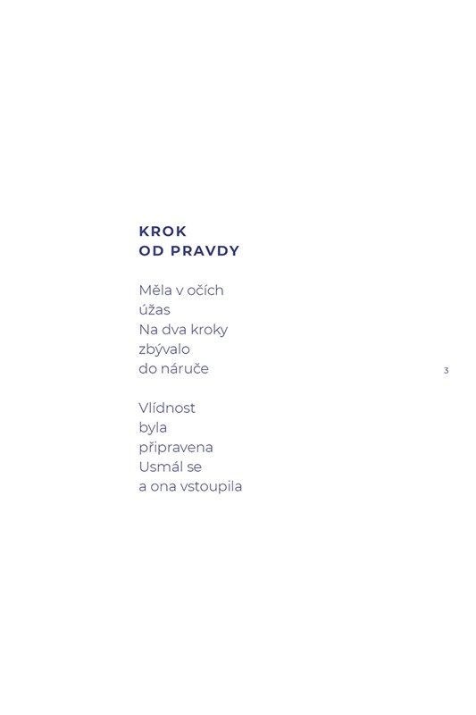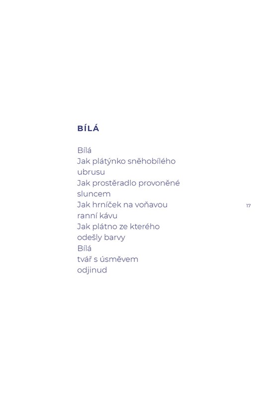 Kniha básní, jejichž společným tématem je hledání laskavosti v okolním světě i ve vnitřním světě autorky.