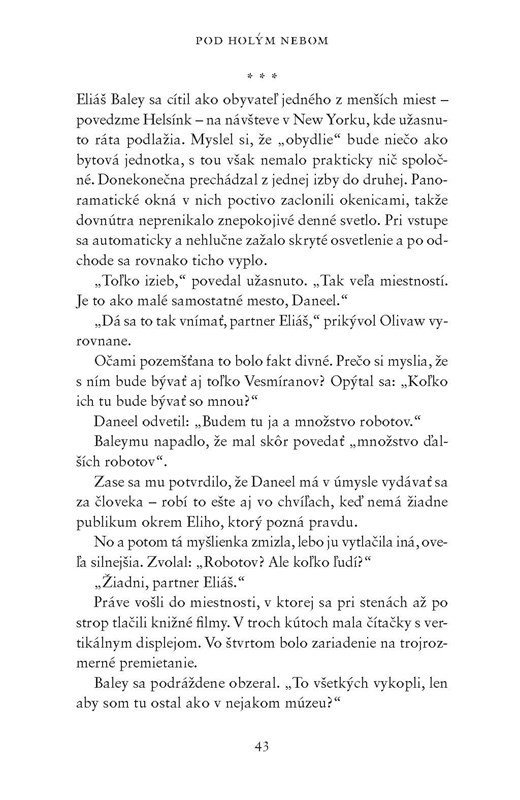 Po poviedkovej knihe Isaaca Asimova Ja, Robot nasledoval v sérii Robot román Oceľové jaskyne. Tretia časť Pod holým nebom je opäť románom. Vraciame sa k pozemskému detektívovi El...