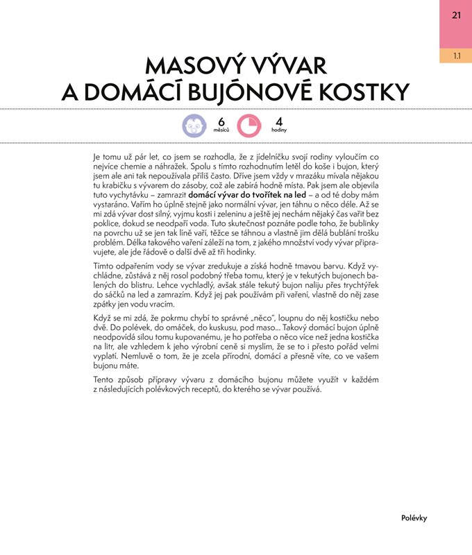 Přestala jste věřit, že vás vaření bude bavit? Já ho miluju! A v kuchyni experimentuju. Vyhýbám se polotovarům a náhražkám. Při výběru surovin se řídím hlavou, při vaření citem – a zatím mi to vychází. Určitě vám nemusím říkat, že si děti někdy u jídla dost navymýšlejí a je složité vymýšlet stále nové recepty. Do knihy jsem jich vybrala 70 a u všech najdete informaci o tom, pro jak staré děti se hodí, a tipy na jejich vylepšení, aby chutnaly i tatínkům.