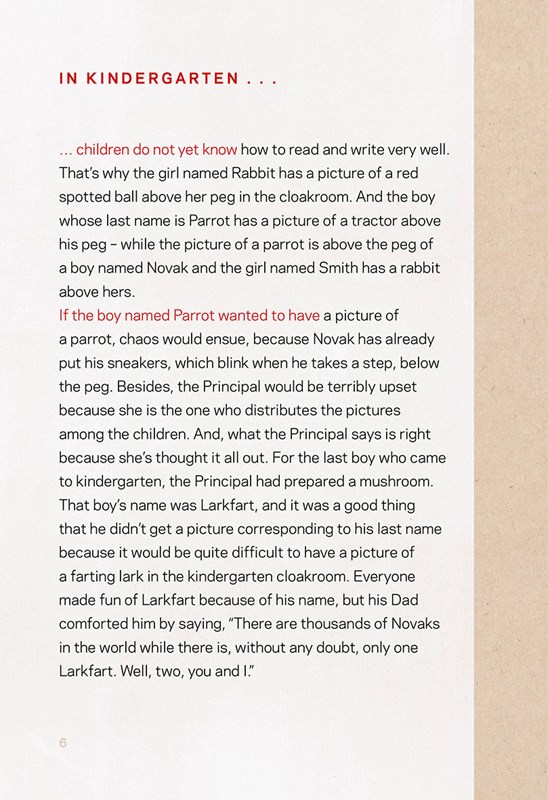 Story from the Kindergarten depicts everyday moments that could have happened in any kindergarten. It pays tribute to the children‘s imagination and the preschoolers‘ ideas that adults can‘t help but wonder. The friendship of Larkfart and Vealfillet, their adventures and their attitudes are pictured both very humorously and very truthfully.