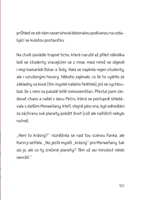 Nech se spolu s Fredym, Karin, Fankou, Petrou a Alexem pohltit nekonečností temného vesmíru… Co myslíš, podaří se jim obtížný úkol zvládnout a vrátit se zpět na školní základnu? Uvidíme… Každopádně ti dám ještě před odletem jednu radu: buď stále ve střehu a dobře si rozmysli, než se k někomu z nich otočíš zády!