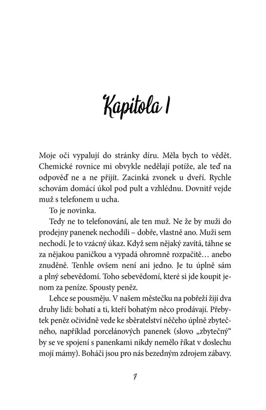 Sedmnáctiletá Caymen Meyersová se velmi brzy naučila, že boháčům se nedá věřit. A za celé dlouhé roky, kdy je studovala zpoza pokladny v mamčině obchodě s porcelánovými panenkami, ještě neviděla nic, co by dokazovalo opak.