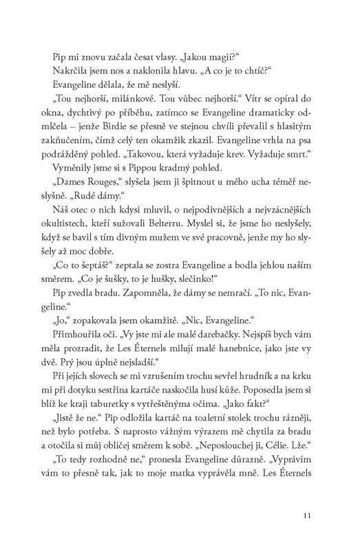 Célie byla vždycky hodná holka s úctou k pravidlům. Jenže pak porušila tradici a rozhodla se stát první chasseurkou – šokovala tak celé království i svého snoubence Jeana Luca, který chasseurům vládne železnou rukou. Célie se v nové roli hodlá osvědčit, a tak se pouští po stopě vraha, který děsí celou Belterru. Dostane se až do doupěte prastarých bytostí, o jejichž existenci neměla tušení, a přitáhne pozornost jejich krále. Jenže čím je jí netvor blíž, tím větší má chuť se jeho temnému hladu poddat…