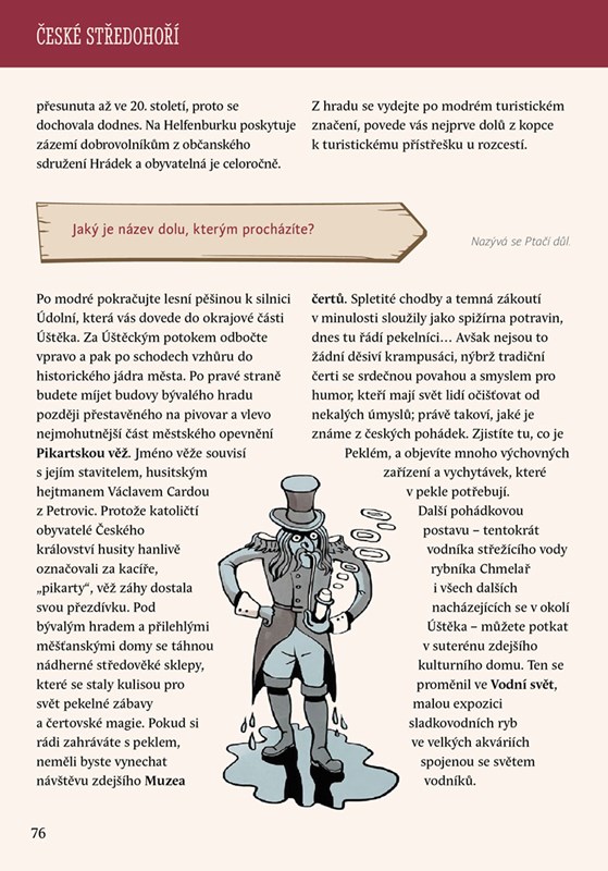 Druhý díl oblíbeného růvodce udělá z každého výletu nezapomenutelný zážitek. Vydáte se k opičímu hrádku, do města pohádek, k ptačím domkům či za skalními skřítky. Budete putovat krajinou podél řeky Berounky, projdete se krápníkovými jeskyněmi, hornickými štolami nebo se vypravíte za husity do Tábora. O všech místech se dozvíte spoustu zajímavostí či pověstí a užijete si i plnění úkolů i kvízů!