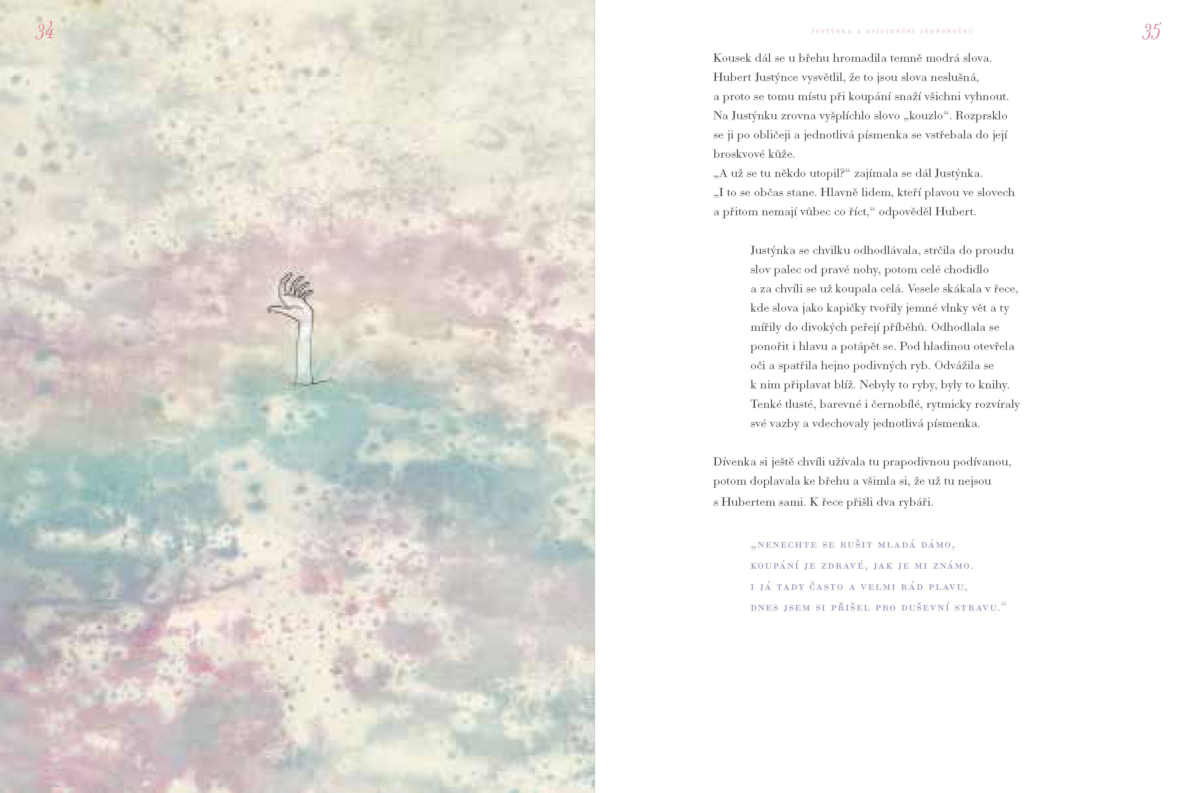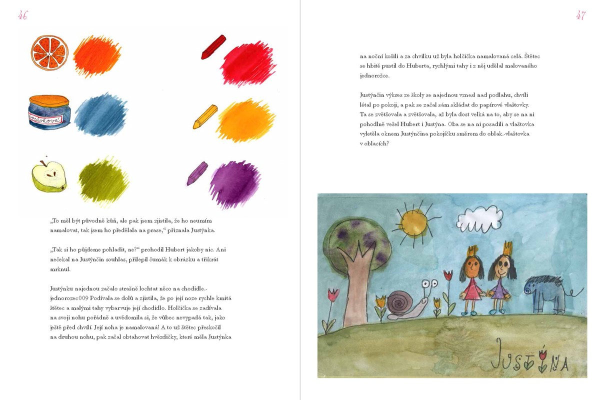 „Akutní nedostatek fantazie“ - tak se jmenuje zvláštní Justýnčina diagnóza, na kterou jí doktor předepsal ještě zvláštnější léčbu - šest dní stráví s asistenčním jednorožcem Hubertem. Každým dnem naplněným jejich společným dobrodružstvím se svět kolem Justýnky zdá být zábavnější a barevnější. Podívají se na místa, o kterých děvčátko ve svém oblíbeném atlasu světa nikdy nečetlo - třeba k tajemné řece Slov, na planetu Fantazie nebo do jejího vlastního výkresu!
