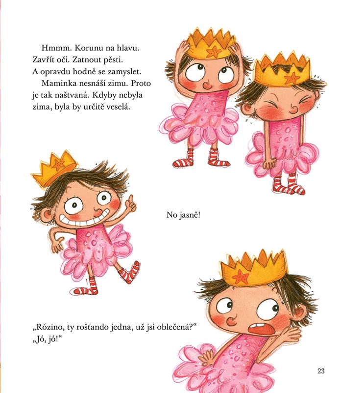 Má ještě malého brášku, a tak bývá maminka někdy unavená. Myslí si, že Róza rošťačí, a nechápe, že i holčička může být zaneprázdněná důležitými věcmi. Pomůže Rošťandě Koruna nápadů, když se maminka opravdu dopálí?