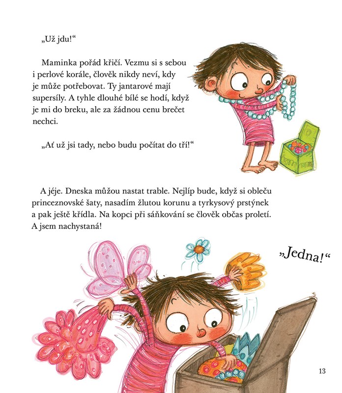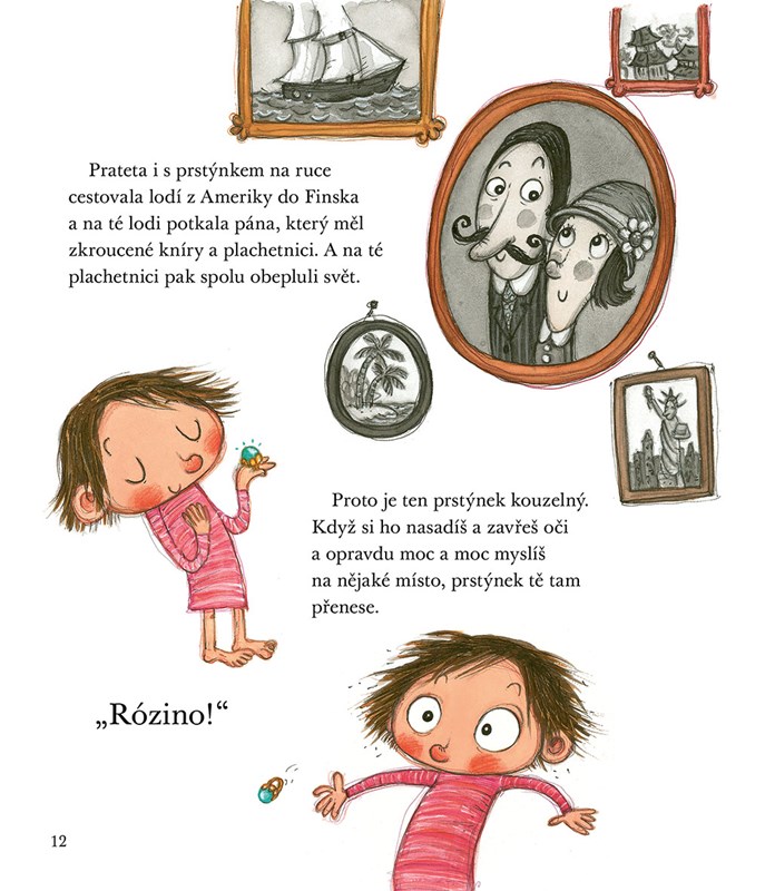 Rózinka je malá holčička s velikou fantazií. Představte si, jaké má v pokojíčku schované poklady! Tak například čarovný prstýnek, který ji může přenést, kam si bude přát, divotvorný prášek a několik princeznovských korun s kouzelnou mocí. Potřebuje je, když musí rozlousknout nějaký oříšek. A to se stává docela často.