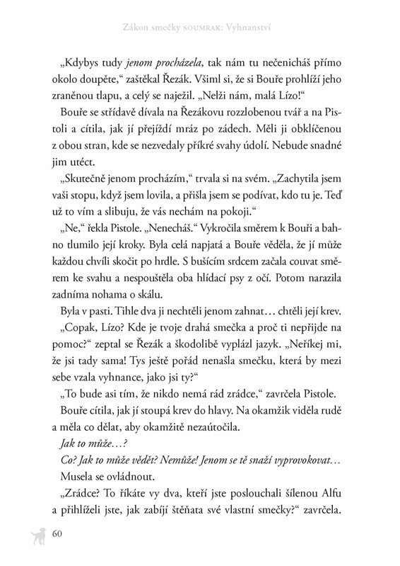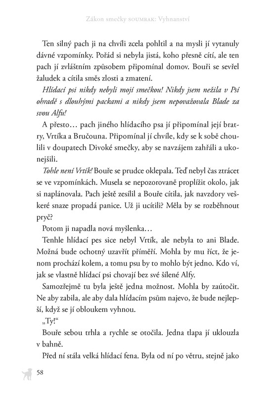 Život v divoké smečce ovládá nedůvěra. Ševel byl zabit a fenka Bouře si je jistá, že mu smrtelné rán...