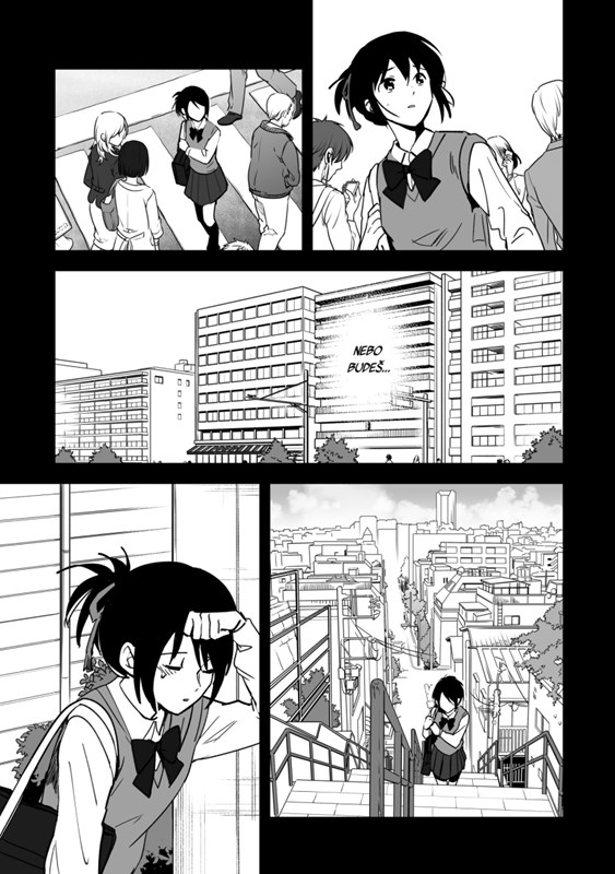 Vše směřuje k dramatickému závěru. Aby Taki zachránil Micuhu a její rodné městečko Itomori před ničivým dopadem komety, spojí síly s jejími středoškolskými kamarády a uvedou do pohybu neslýchaný plán. Jenže co když si její otec v pozici starosty postaví hlavu a nebude chtít spolupracovat? Dokáže Taki s přáteli odvrátit katastrofu? Mají s Micuhou šanci na společnou budoucnost? Krajinu halí stín, světy se prolínají a nastává chvíle osudového rozhodnutí.