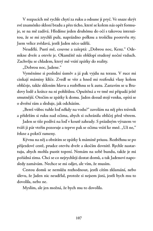 Po několika měsících ale na Jadena náhodou narazí. A dřív, než stihne znovu vystavět svou obrannou zeď, jsou zpátky staré vzpomínky a city. Málem spolu před nehodou začali chodit, a i když se to snažila vytěsnit, o to víc si nyní uvědomuje, jak moc jí chyběl.