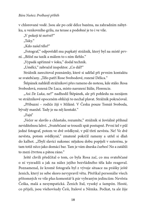 Je brzy ráno po veselce v romantické vilce na českém venkově. Svatební fotograf se probouzí a v zahradním bazénku objevuje tělo svatebčanky Rosy. Idylku střídá zděšení a panika. Ženich je zničený, nevěsta podezřelá, hosté opilí a policisté nezkušení. Co se vlastně na „mezinárodní svatbě“ stalo? Je těžké dát dohromady jednu pravdu, protože každý účastník slavnosti vidí sled událostí trochu jinak. Jak jeden po druhém vyprávějí o tom, co nešťastné noci předcházelo, začíná to vypadat, že možná stačilo málo, aby svatba skončila jako jakákoli jiná – kocovinou a odjezdem. Pár jiných rozhodnutí na životních křižovatkách a karty mohly být rozdány úplně jinak.
