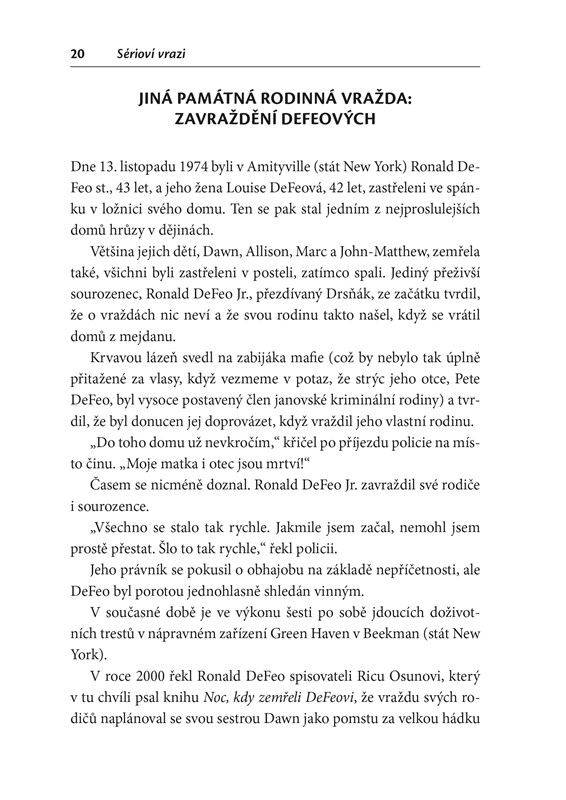 Existují důvody, proč nám po vyslovení jmen některých nejznámějších sériových vrahů přejede mráz po zádech a my se musíme znovu ohlédnout přes rameno, zda jsou naše dveře opravdu zavřené. Jsou to monstra, jenže skutečná. Jejich zločiny jsou tak trestuhodné, tak odpudivé, že se navždy vryjí do naší paměti.