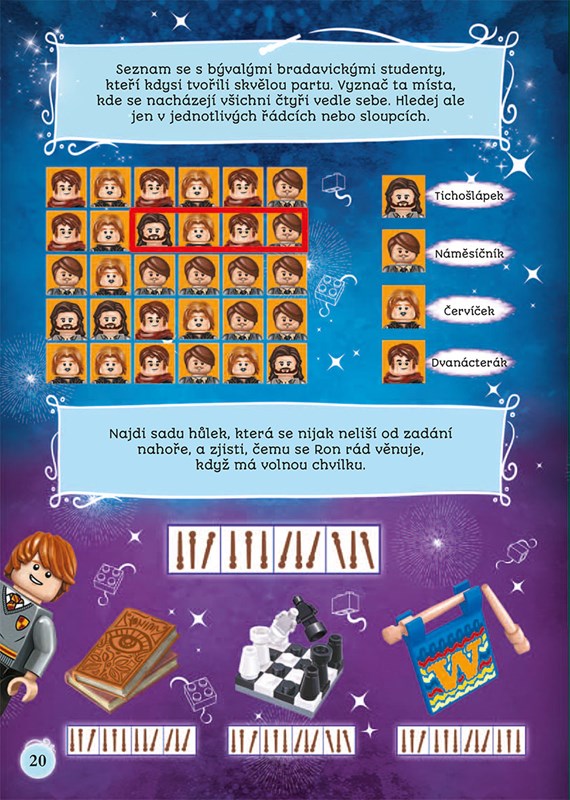 Když jsou poblíž pavouci, není úplně nejstatečnější, ale zaručeně je tím pravým, s kým si užiješ ve světě kouzel spoustu neopakovatelných zážitků. Sestav si vlastní minifigurku Rona Weasleyho™ a povolej svou kouzelnickou sílu, s níž lehce zvládneš báječné aktivity v této nabušené knížce.