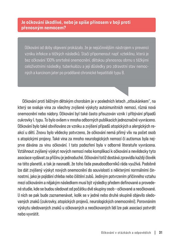 Od té doby vývoj velmi pokročil. Zrychlil zejména v období pandemie covidu-19. Vakcína proti této nákaze vyvolala mnoho vášnivých diskuzí a rozdělila společnost na dva tábory – příznivce a odpůrce. Autor, profesor MUDr. Jiří Beran, se v knize věnuje tématu očkování bez emocí a srozumitelně odpovídá na otázky týkající se nejen vakcín proti covidu-19, ale i povinného či cestovního očkování a vysvětluje vše, co je s problematikou spojené a zajímá širokou laickou veřejnost.