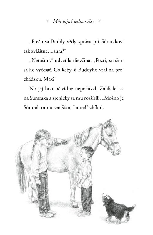 Len čo Laura zašepká slová čarovného zaklínadla, jej poník Súmrak sa premení na jednorožca. Toto tajomstvo však musí prísne strážiť, inak by Súmrakovi hrozilo veľké nebezpečenstvo. Keď sa Laura a Súmrak dozvedia, že poník jej novej kamarátky Mel má strach skákať, rozhodnú sa mu pomôcť. Použijú Súmrakovo kúzlo, aby si Sivko začal veriť a svoj strach prekonal. Jedného dňa všetkých zastihne silná búrka a Mel so Sivkom sa ocitnú v nebezpečenstve. Nájde v sebe Sivko dostatok odvahy na to, aby ich zachránil?