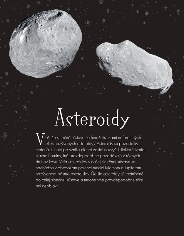 Vydajte sa s nami na cestu do vesmírnych diaľav so zastávkami pri neobyčajných planétach, vzdialených hviezdach a spletitých galaxiách. Táto fascinujúca kniha odhaľuje záhady viac ako stovky nebeských telies doplnené ohromujúcimi faktami a novými zaujímavými vedeckými objavmi.