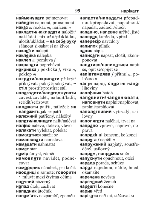UKRAJINSKO-ČESKÝ/ČESKO-UKRAJINSKÝ KAPESNÍ SLOVNÍK je praktická a jednoduchá pomůcka pro všechny studenty ukrajinštiny, ale především pro návštěvníky České republiky, kteří se potřebují dorozumět v běžných každodenních situacích. Slovník obsahuje cca 20 000 nejfrekventovanějších hesel, obratů a frází. Je také doplněn přehledem ukrajinské gramatiky.
