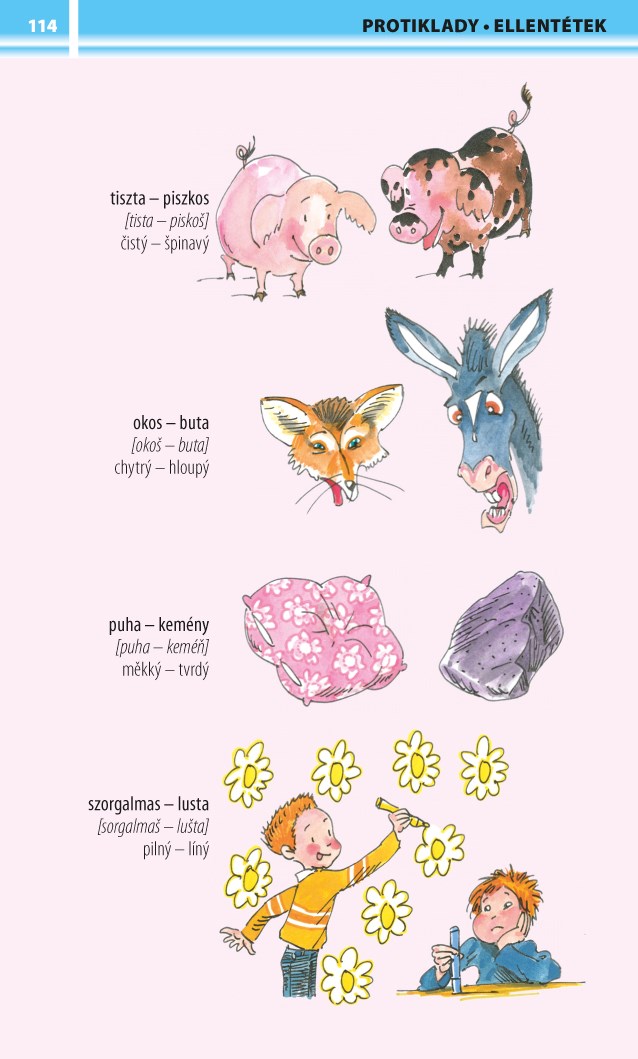 Knížka se stane dobrým pomocníkem při učení a procvičování maďarských slovíček. Na veselých obrázcích, jež znázorňují běžné životní situace, najdete názvy věcí, se kterými se denně setkáváte. Týkají se cestování, zábavy, vybavení bytu, školy, sportu ad. Každý tematický celek je pak doplněn jednoduchými frázemi ze života. Na konci se nachází souhrnný česko-maďarský slovník obsahující veškerá slova ilustrované části.