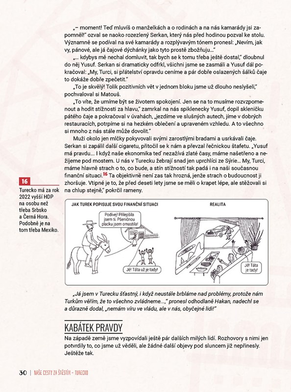 Nové putování po světě, ke kterému si autorka Kristýna přizvala parťáka Matouše, a spolu objevují, co pro jiné národy znamená štěstí. Představí vám Turecko jako sílu všech sil, o které místní hovoří jako o síle napětí. Kostariku jako sílu nezkrotného života, jehož koloběh se ztrácí ve vlnách oceánů a v křiku džungle. A Japonsko jako sílu neutuchajících tradic, které tento národ provází snad od počátku jeho existence. Nechte čas spolu se všemi povinnostmi rozplynout ve vzduchoprázdnu vesmíru a vychutnejte si každý okamžik vtisknutý do stránek této knihy.