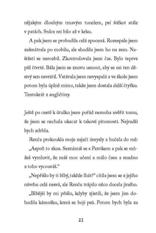 Hance je třináct a psy si raději vždycky držela od těla. Jenže pokud chce zapůsobit na Patrika, který chodí pomáhat do psího útulku, bude muset svůj strach překonat. A tak sebere veškerou odvahu a přihlásí se také jako dobrovolnice.