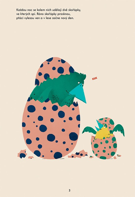 Víte, jak velký pták Noh a mrňavý ptáček Nožička spí? Když slunko zapadá, udělají se kolem nich skořápky a oni v nich usnou. Když slunko vyjde, skořápky zmizí a ptáci se probudí. Jednou v noci se ale Nožička náhle probudil. To bylo náramné štěstí, protože v noci přiletěly na košťatech dvě čarodějnice, Abraka a Dabraka, a chtěly si vejce s ptákem Nohem upéct k večeři! Již třetí příběh z této svérázné ptačí říše od Daniely Fischerové, oblíbené a oceňované autorky knih nejen pro děti, s veselými barevnými ilustracemi Jakuba Kouřila.