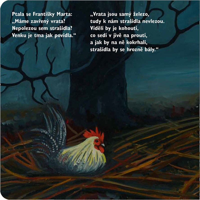 Ivan Martin Jirous psal svým dcerám, Františce a Martě, v dopisech z vězení básničky a pohádky, které pak vyšly souborně v knize Magor dětem. Marta, dneska máma čtyř dětí, měla nejradši strašidelnou pohádku Ptala se Františky Marta, a právě proto ji nejmenším čtenářům namalovala přesně tak, jak si v dětství ta hrozná strašidla představovala.