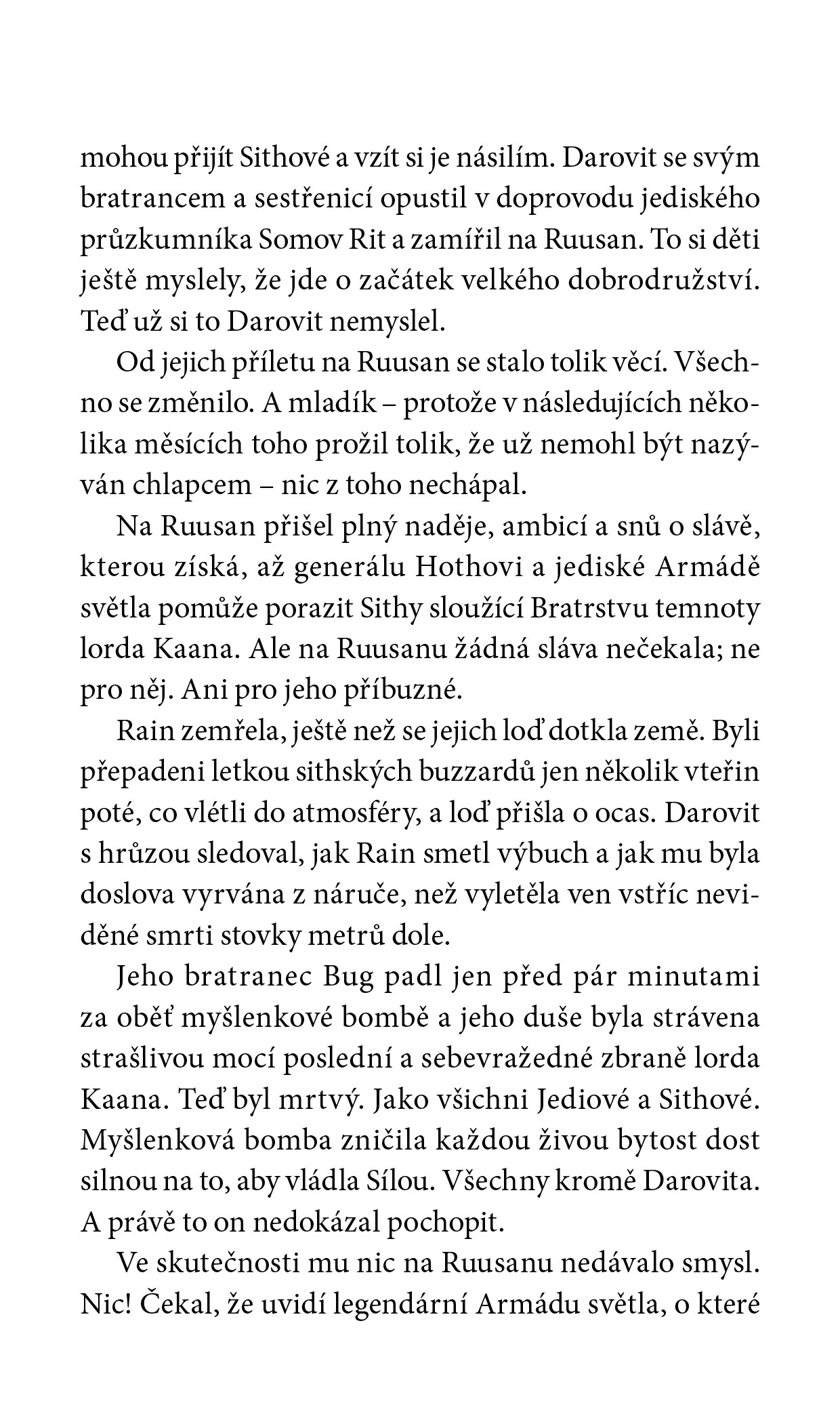 Ale je tu někdo, kdo je odhodlaný Dartha Banea zastavit: Johun Othone, padawan mistra Jedi lorda Hotha, který zemřel Baneovou rukou v sithské válce. Třebaže zbytek Jediů Johunovi nevěří, on je neotřesitelně přesvědčen, že jeden ze Sithů přežil. Ale dokonce ani Johun nedokáže předvídat úžasné nové znalosti a moc, kterou Darth Bane objeví díky vizím v Síle – moc, která ho změní tak, jak si nikdy ani nedokázal představit.