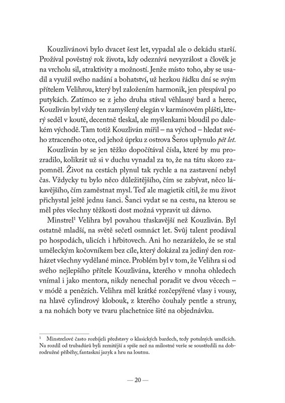 Za vábením rubínů se vydává i prostořeký bard Velihra, jeho přítel Kouzliván a charismatická Šestka. Úplně nechápou, proč se k nim tato okouzlující žena připletla a proč se snaží svými podmanivými slovy vymluvit bardovi díru do hlavy. Poprvé se všichni setkali na maškarním plese v loveckém zámečku, kde se objevila i postava v masce chrliče a s krví na rukou. Tato noc jim změnila život...