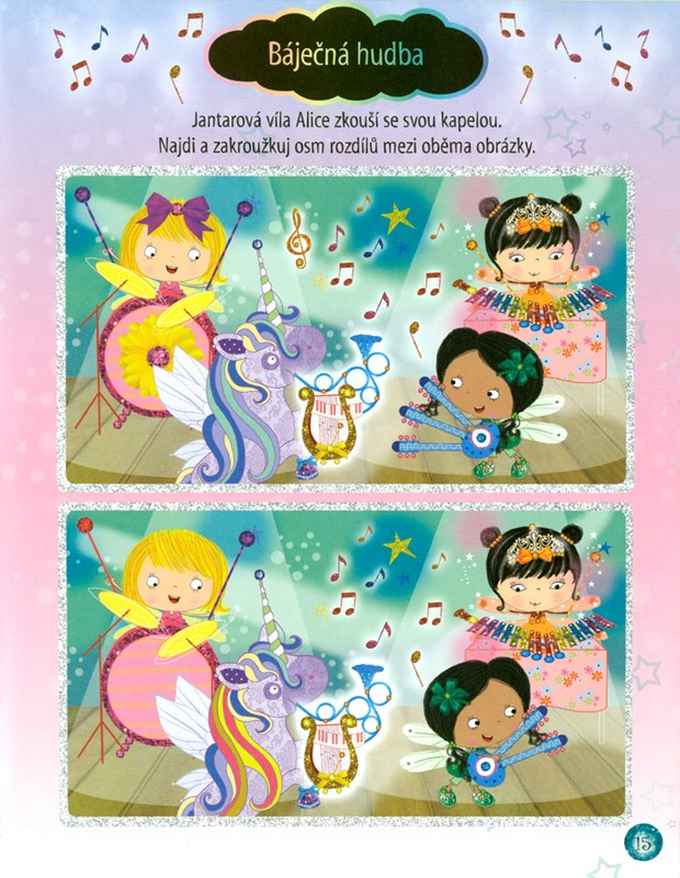 Čeká tě spousta báječných aktivit a k tomu vyškrabávací stránky ukrývající nejedno třpytivé překvapení. Odhal je a vyrob si blýskavý jednorožčí roh, kouzelnickou hůlku, úžasný náhrdelník a spoustu dalších okouzlujících doplňků a ozdob.