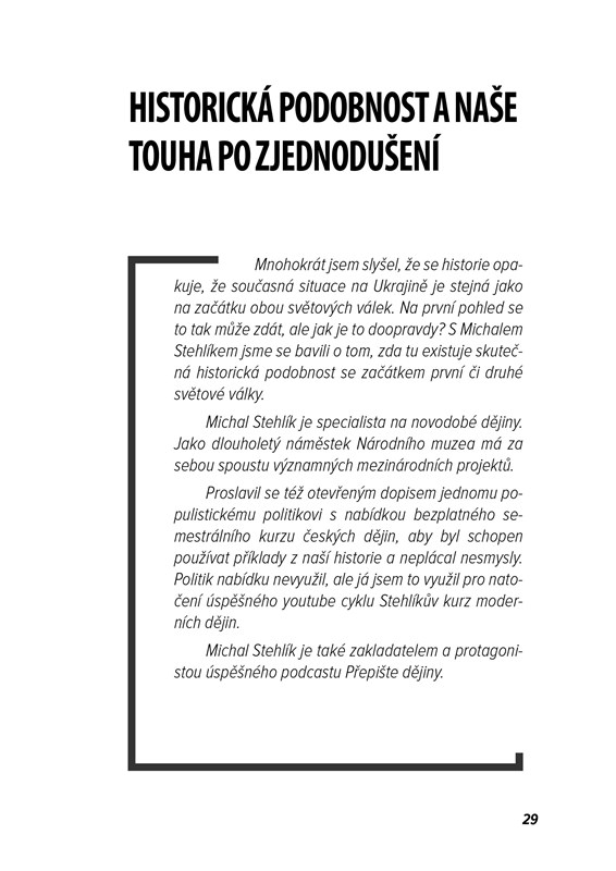 Vpád ruských invazních vojsk na Ukrajinu šokoval celý svět. Kde leží společenské a historické příčiny tohoto konfliktu? Jak do událostí zapadá politická kariéra prezidentů Putina a Zelenského? A jak bude vypadat budoucnost Evropy? Na tyto otázky v rozhovorech s Petrem Horkým hledají odpovědi bývalý ministr zahraničí Cyril Svoboda, expertka na jadernou energii Dana Drábová, válečná novinářka Lenka Klicperová a řada dalších významných osobností.
