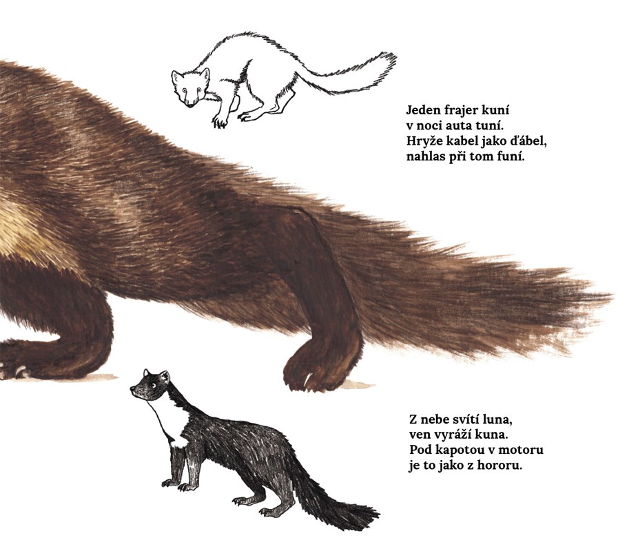 Potkani, holubi, moli a rybenky — fuj, řeknete si možná. Neoblíbení tvorové, s nimiž se dělíme o městské ulice a byty, však mají také své potíže a radosti. A že jsou to kolikrát pěkní uličníci! Tereza Marianová přenáší čtenáře skrze ilustrace a poezii do konkrétních míst městského prostředí: lidé totiž nejsou sami, kdo se musí vypořádat s ruchem velkoměsta. Akvarelové barvy rozpouští voda z louží a fontán, ilustrace stínuje prach setřený z parapetu a obrazy skrývají zákoutí Plzně či Prahy...