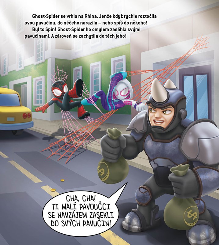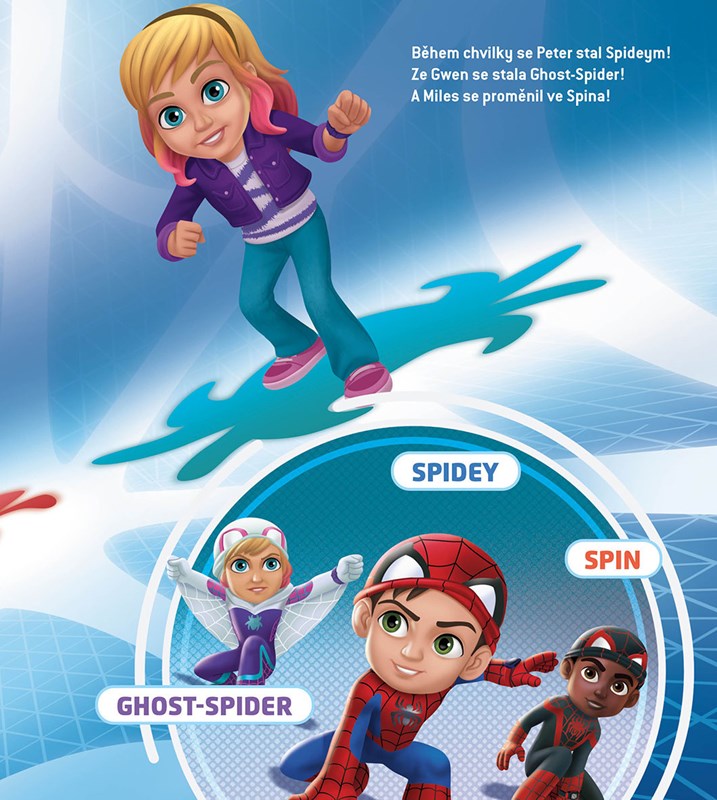 Oblíbení pavoučí hrdinové Spidey, Ghost-Spider a Spin už sviští do akce v komiksové knížce plné úžas...