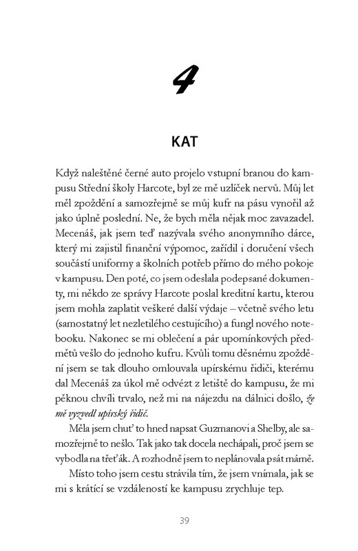 Kat Finnová a její matka jen tak tak přežívají mezi lidmi. Jako všichni upíři musí pít Hemu, drahou syntetickou krevní náhražku, aby přežily, protože téměř celé lidstvo bylo infikováno virem, který je pro upíry smrtící. Kat se netěší na věčnost strávenou přežíváním a chudobou, ale když zjistí, že byla přijata na Střední školu Harcote, prestižní přípravku, která tajně přijímá pouze upíry, ví, že se začíná blýskat na lepší časy.